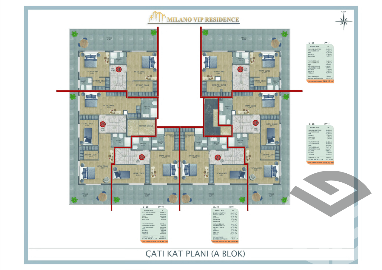 Type 3+1 Duplex 162-196 m2 (12 apartments)